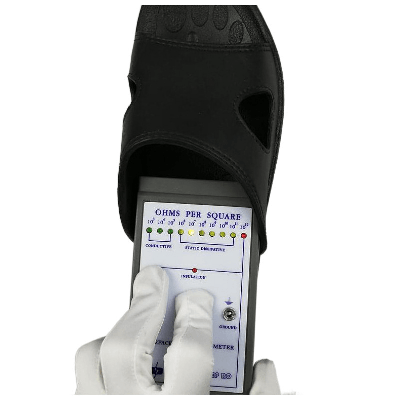 شبشب ESD مصنوع بشكل أساسي من مواد SPU ، مع أداء كهربائي جيد مضاد للثبات ، مريح وسهل المشي ، مناسبة لورشة العمل الإلكترونية وغرفة نظيفة وأماكن عمل أخرى.