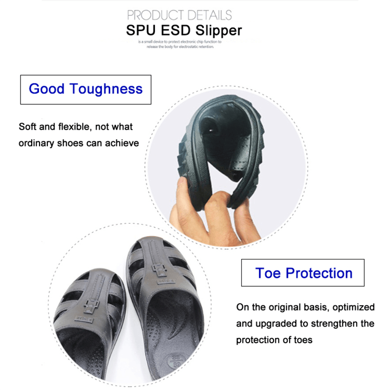 في بيئات العمل مثل تصنيع المعدات الإلكترونية وتجميعها وصيانتها ، قد يتسبب التفريغ الإلكتروستاتيكي (ESD) في أضرار جسيمة للأجهزة الحساسة مثل المكونات الإلكترونية ولوحات الدوائر. تم تصميم النعال ESD المضادة للثبات لمنع توليد الكهرباء الثابتة من جسم الإنسان ، وتوجيه الكهرباء الساكنة بأمان إلى الأرض ، وبالتالي تجنب التهديد المحتمل للكهرباء الثابتة إلى المعدات الإلكترونية. يمكن أن يحمي هذا التدبير الوقائي بفعالية المكونات الإلكترونية عالية القيمة ويقلل من أضرار المعدات وانقطاع الإنتاج الناجم عن التفريغ الإلكتروستاتيكي.