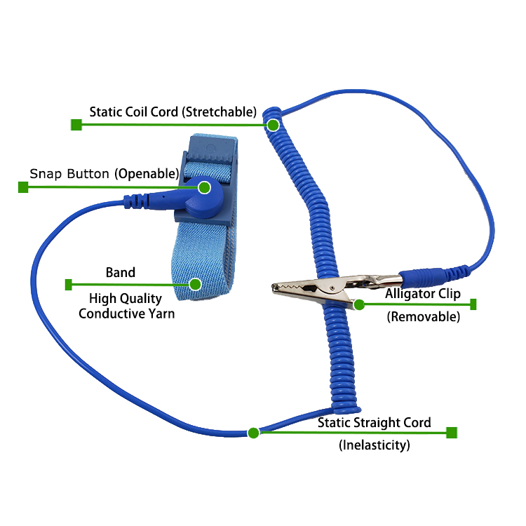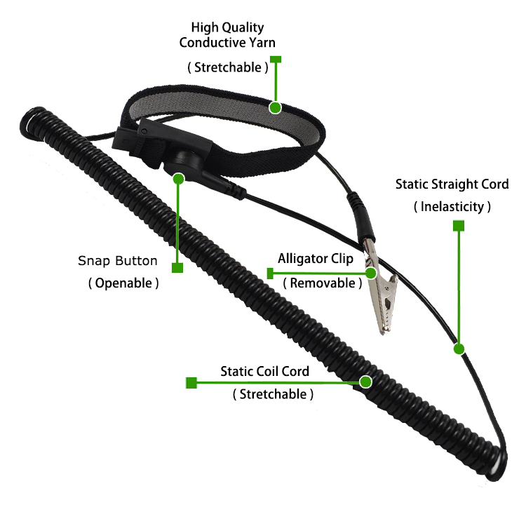 يستخدم حزام المعصم المضاد للهول مع حزام الرسغ والكابل الأرضي لتحويل الكهرباء الثابتة لجسم الإنسان إلى الأرض. يتكون من نطاق مرن ، مشبك قابل للتعديل ، الحبل المرن الربيعي. مقاومة الحماية والتوصيل أو تشاك مؤلفة. يتم نسج الطبقة الداخلية للمرونة مع الغزل المضاد للثبات ، ويتم نسج الطبقة الخارجية مع خيوط عادية.