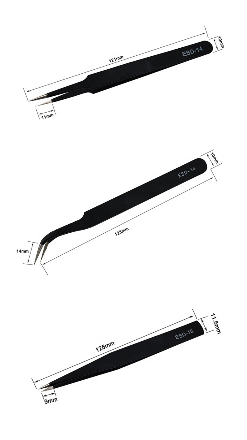 2. ESD-11 (كبير): الطرف أطول ، مناسب للعمليات الدقيقة في المكونات الإلكترونية الدقيقة.